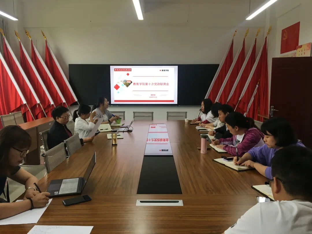 7月13日,教育学院2019—2020学年下学期第十次党政联席会在安宁校区三教406室召开。教育学院党总支书记、院长崔立华、副院长萧敏出席会议,各相关部门负责人列席会议。